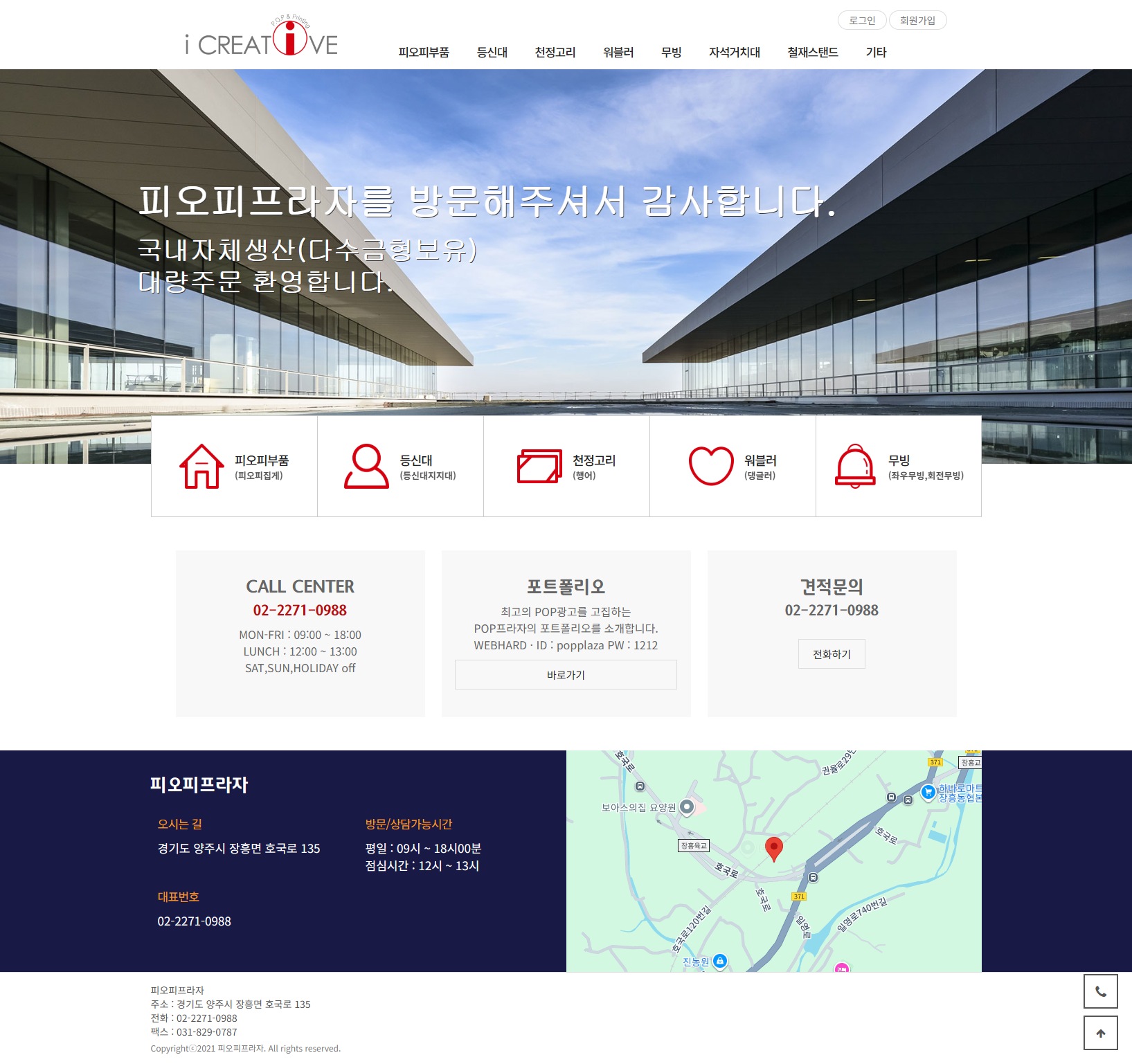 목록 본문 피오피프라자 1 상세정보 1 주소 경기 양주시 장흥면 호국로 135 대표번호 02-2271-0988 플레이스 1 서비스 제조업 홈페이지 http://www.popplaza.kr #1 이전글티와이파우들러 주식회사 (세라) 25.10.28 다음글해금연구소 무궁 25.10.28