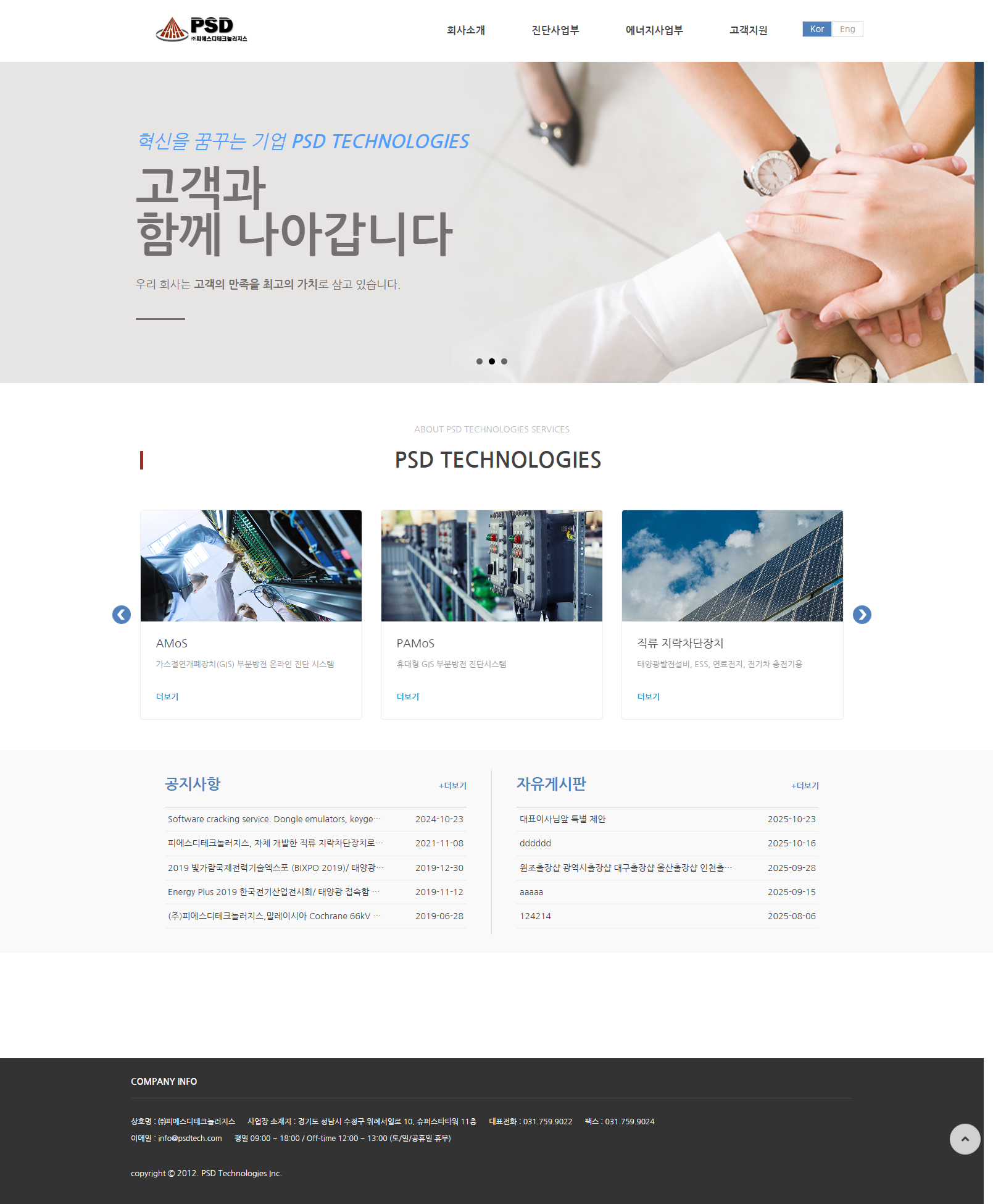 (주)피에스디테크놀러지스는 전기인의 명예를 자랑스럽게 생각하고, 혼이 깃든 제품을 만들고자 혼신의 노력을 다하고 있습니다.