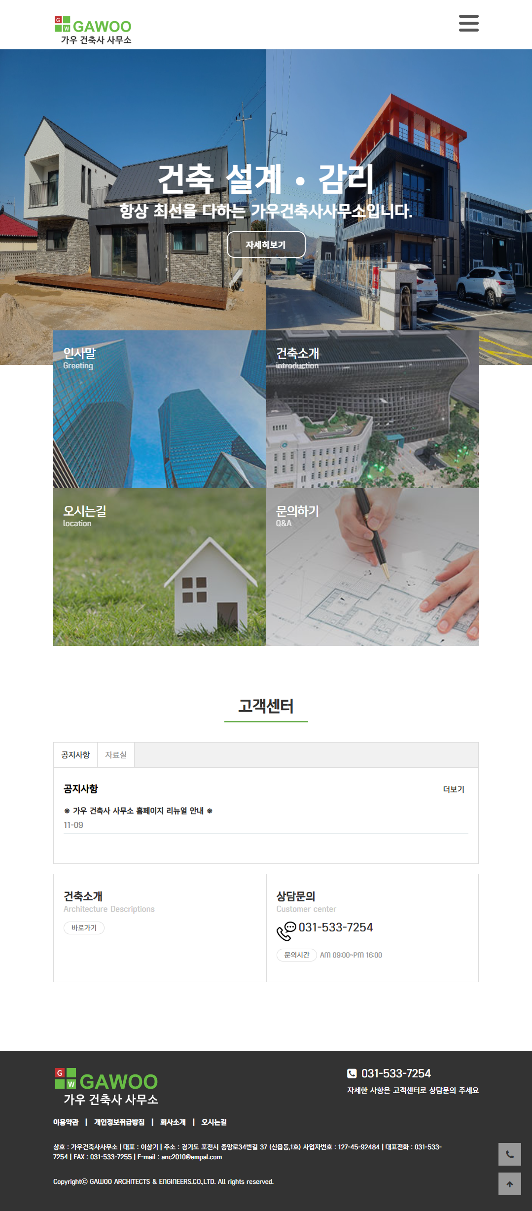 특히나 이쪽지역같은 경우 지역 특성상 산지나 개발이 되어있지 않은 토지들이 많아 처음 일을 시작할 땐 많은 어려움과 시행착오도 있었지만 지금은 그간의 경험과 성실함으로 건축설계사무소로서의 위상을 확고히 하게 되었습니다.