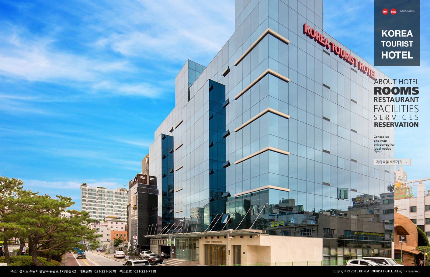 수원시에 방문하실 때, 코리아관광호텔에서 집에있는 듯한 편안함과 그에 맞는 최상의 서비스를 느껴보세요. 시내중심지에 있어 도심의 명소들과 볼거리를 쉽게 만나보실 수 있습니다.