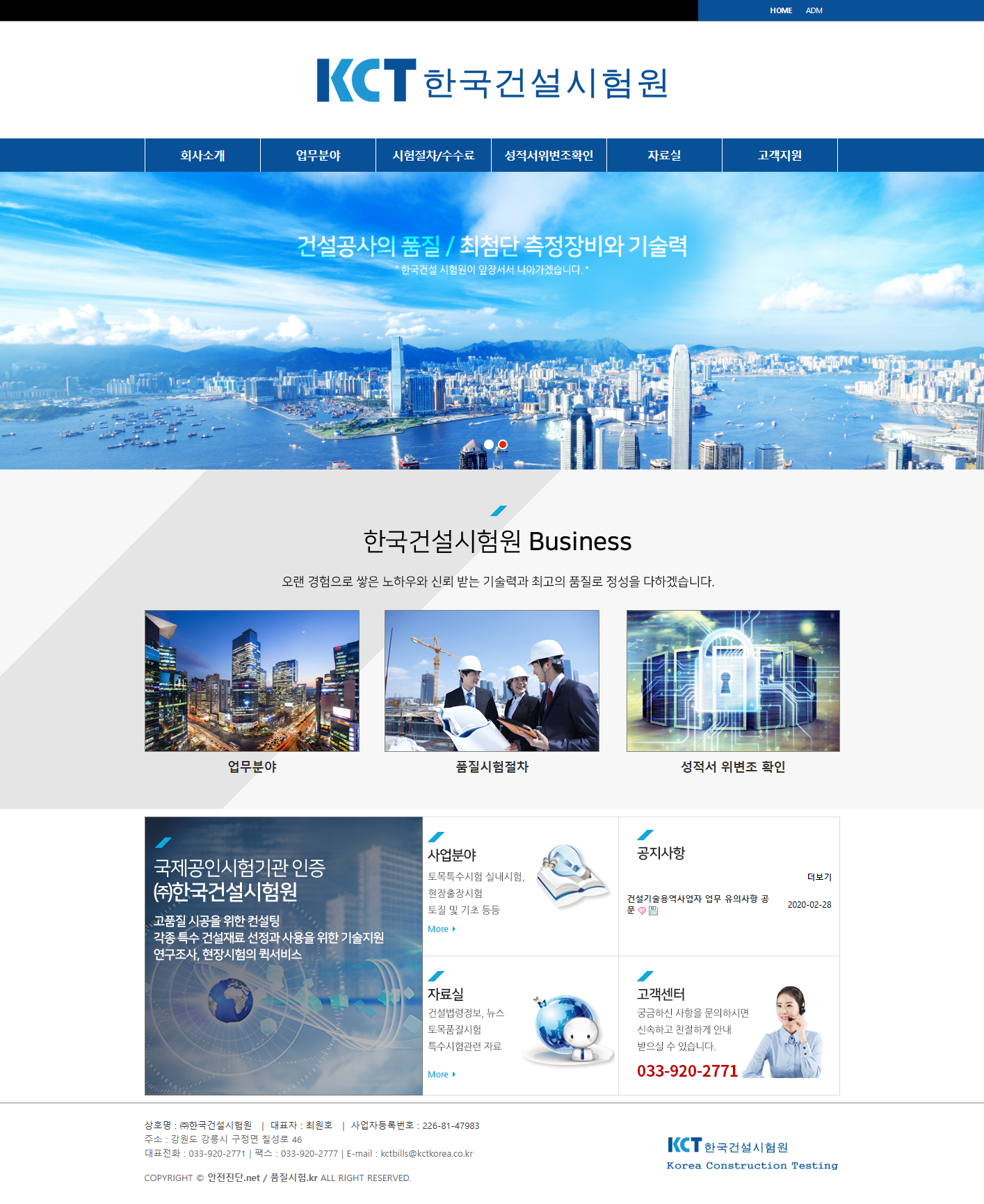 받았습니다.공인기관으로서의 기본적인 시험검사업무 수행과 아울러 건설공사 고품질 시공을 위한 컨설팅, 각종 특수 건설재료의 선정과