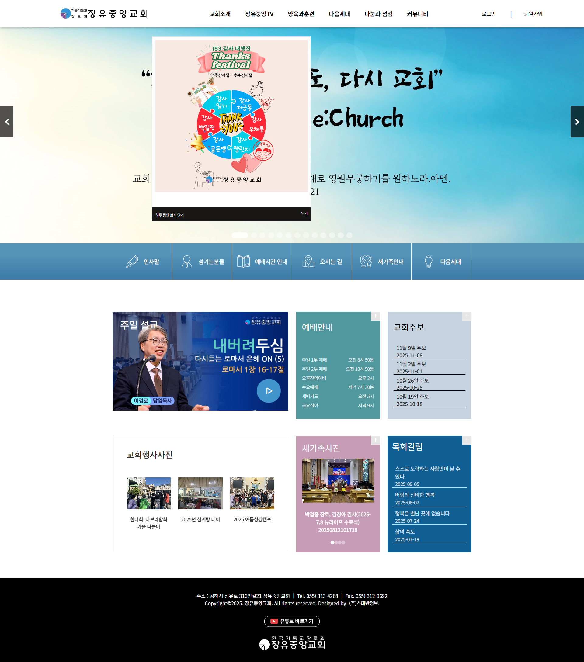 더불어 단순히 무형의 공간에 있는 홈페이지에 방문한 것이 아니라 우리 장유중앙교회에 오신 것으로 믿습니다.
