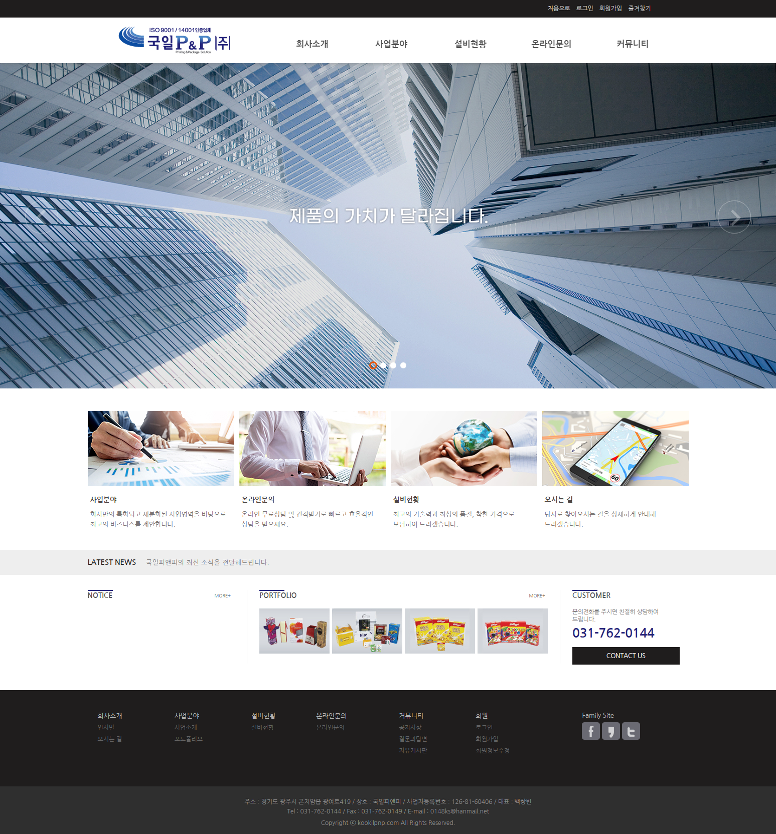 저희 국일P&P(주)는 ‘최고의 품질로서 고객의 기쁨과 더불어 성장한다’의